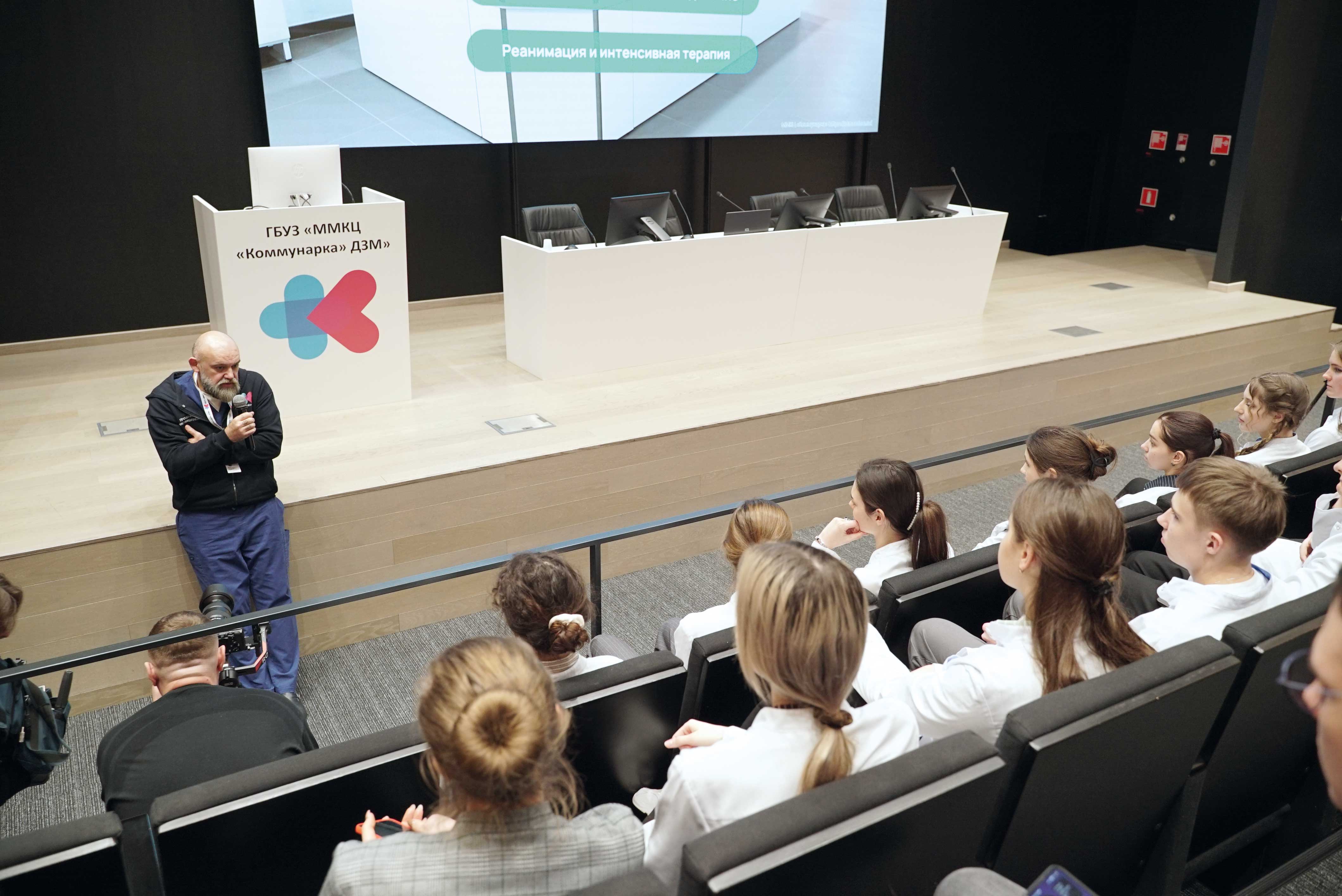 Медицинские классы были открыты в 2015 году. Сегодня они работают в 124 столичных школах. В них обучаются около 6700 старшеклассников. Школьники углублённо изучают биологию, химию и математику, знакомятся с анатомией и физиологией человека, принципами здорового образа жизни, учатся выполнять медицинские манипуляции, ухаживать за больными, оказывать первую помощь при угрожающих состояниях. Чтобы узнать больше о будущей профессии, старшеклассники встретились с директором Московского многопрофильного клинического центра «Коммунарка» Денисом Проценко.