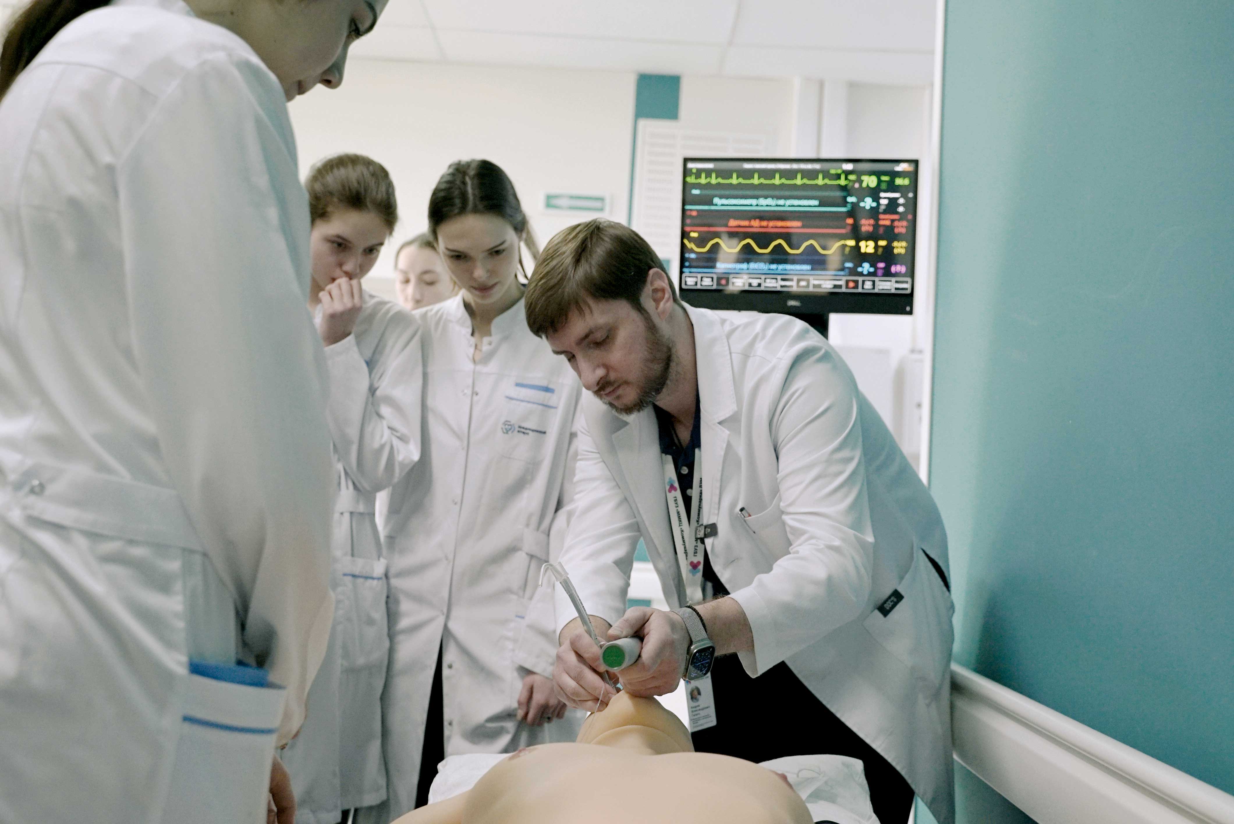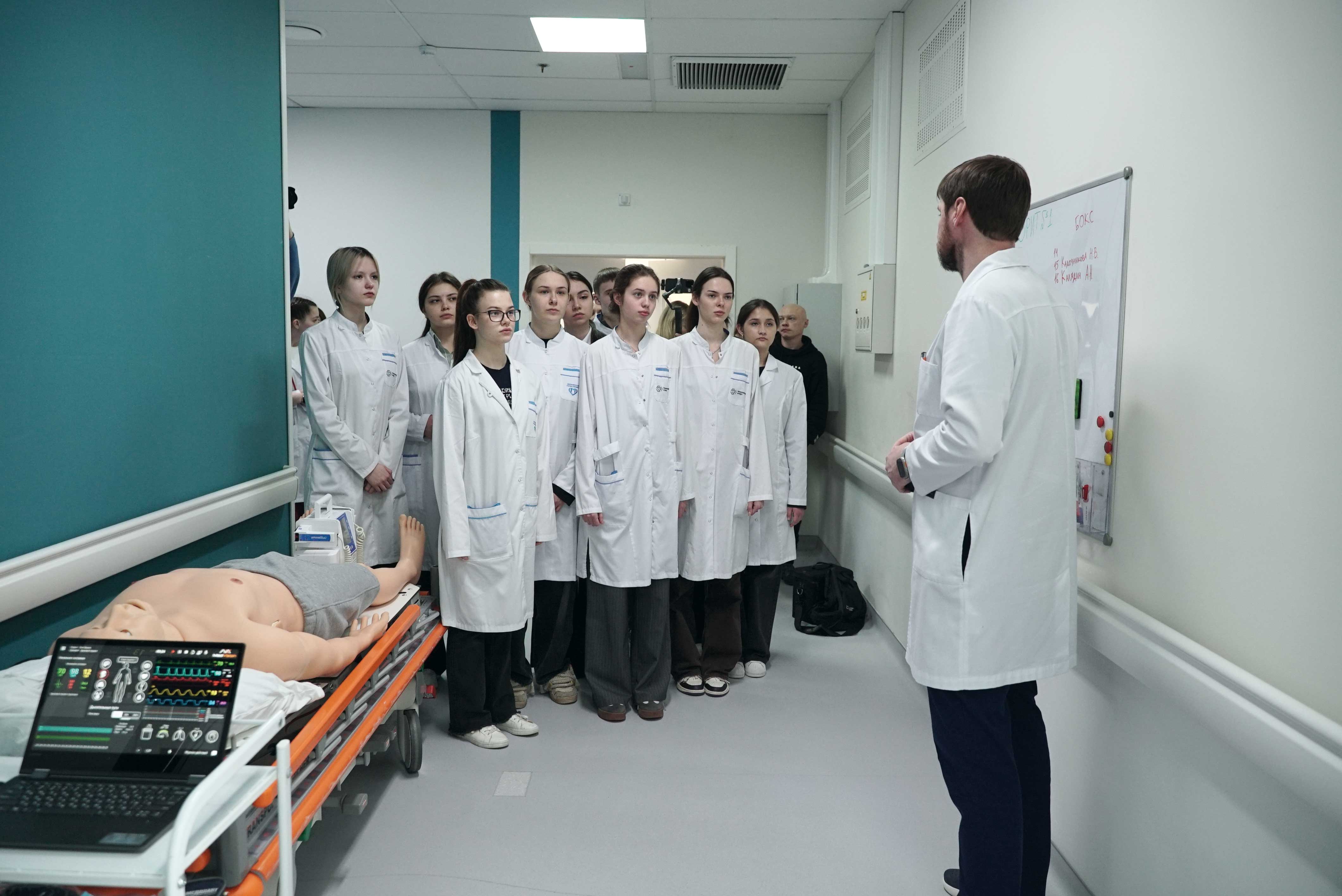 Встреча не ограничилась экскурсиями по отделениям: старшеклассникам предложили сделать и первые практические шаги в профессии. На симуляционном оборудовании им дали возможность отработать основные приёмы, увидеть, как манипуляции на манекене отражают состояние «пациента» и меняют показатели, продемонстрировали алгоритмы базовой сердечно‑лёгочной реанимации.