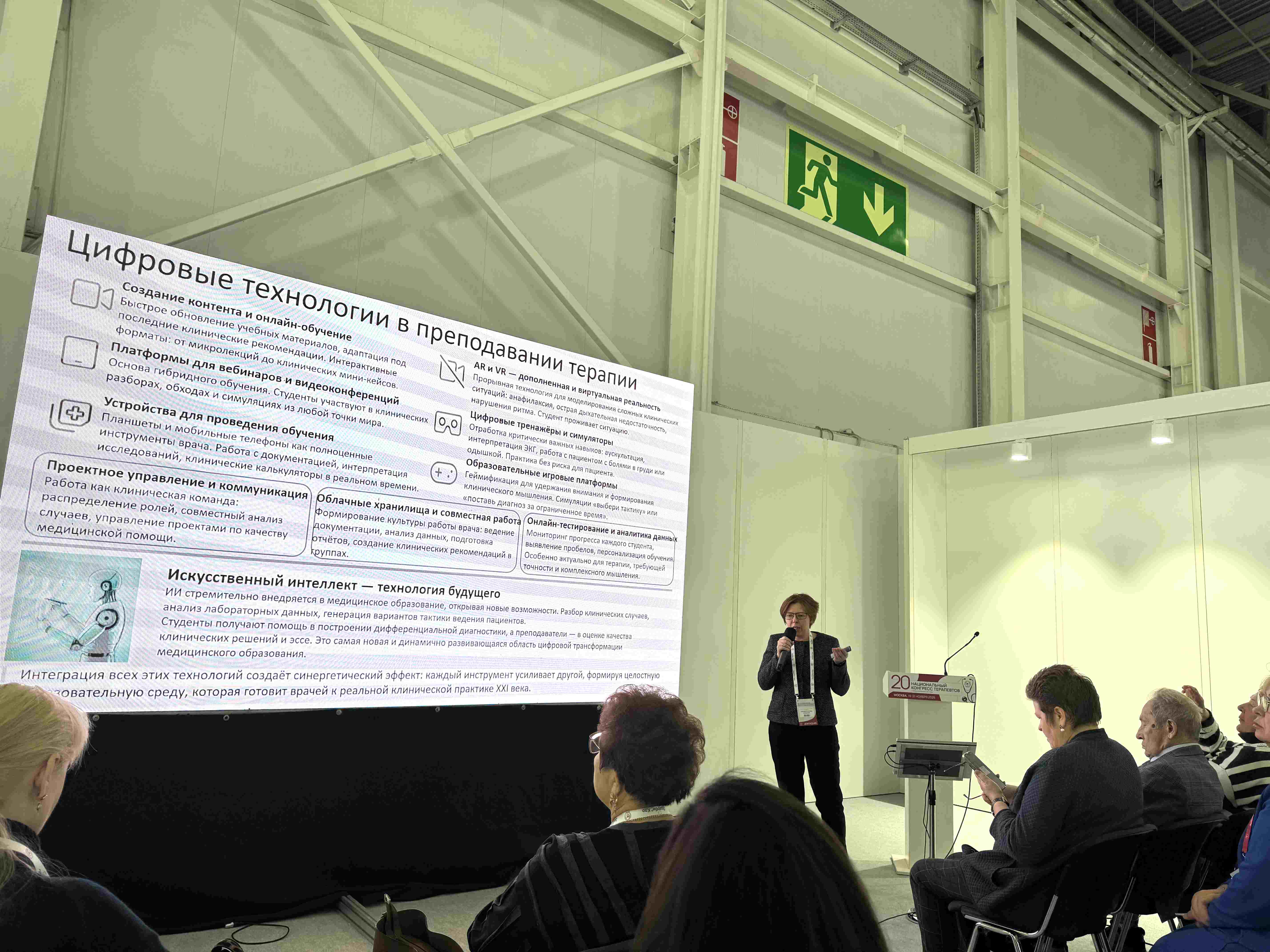 Анна Викторовна представила доклад «Новые технологии преподавания терапии», в котором осветила ключевые направления развития обучения терапии, современные методические подходы и возможности повышения качества подготовки студентов.