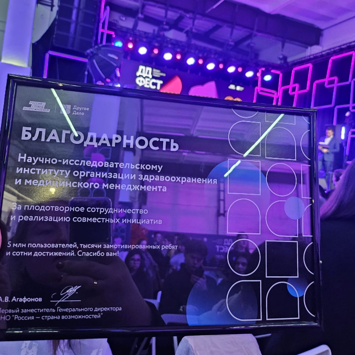 В прошедшие выходные, 26–27 октября, бесплатный московский ЗОЖ-марафон «Дарите время семье» выступил партнером на фестивале полезной деятельности «ДД фест», организованном фондом «Другое дело», также команду НИИ организации здравоохранения и медицинского менеджмента наградили благодарственной грамотой от организаторов фестиваля.