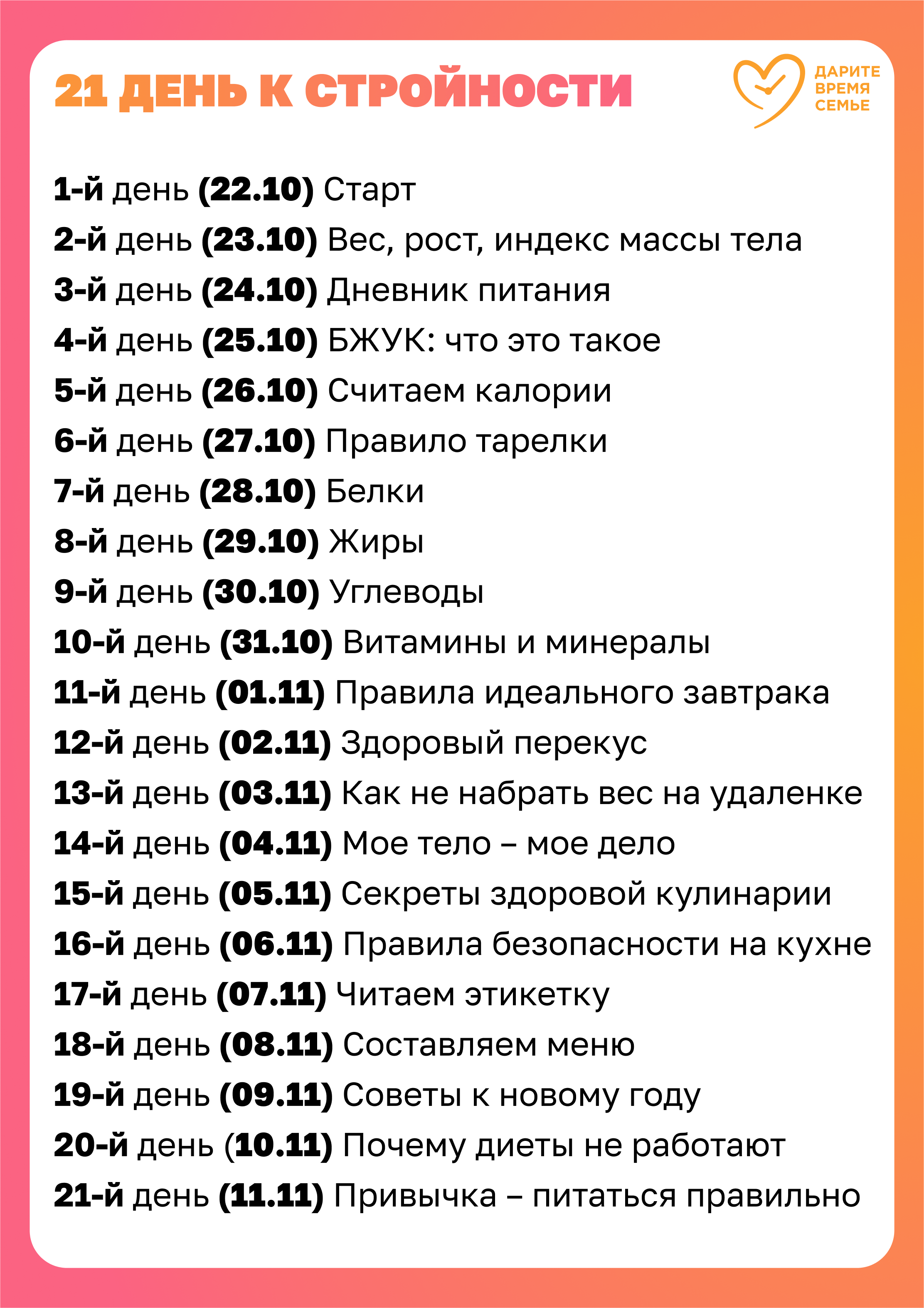 На бесплатном московском ЗОЖ-марафоне «Дарите время семье» проходит марафон в марафоне «21 день к стройности»!