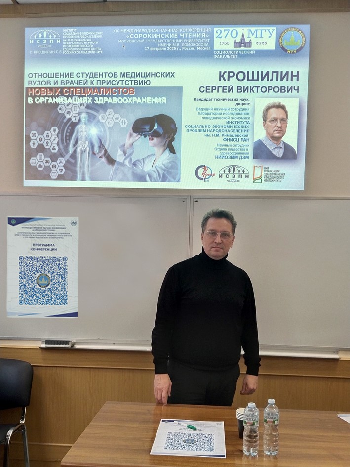 17 февраля 2025 года на социологическом факультете Московского государственного университета им. М.В. Ломоносова состоялась XIX Международная научная конференция «Сорокинские чтения» на тему «Современная российская молодежь: ее социальная ответственность и потенциал в развитии страны». Мероприятие было приурочено к 270-летию Московского государственного университета. Научные сотрудники отдела лидерства в здравоохранении НИИ организации здравоохранения и медицинского менеджмента, д. э. н., доцент Медведева Е.И. и к. т. н., доцент Крошилин С.В. приняли участие в пленарном заседании.