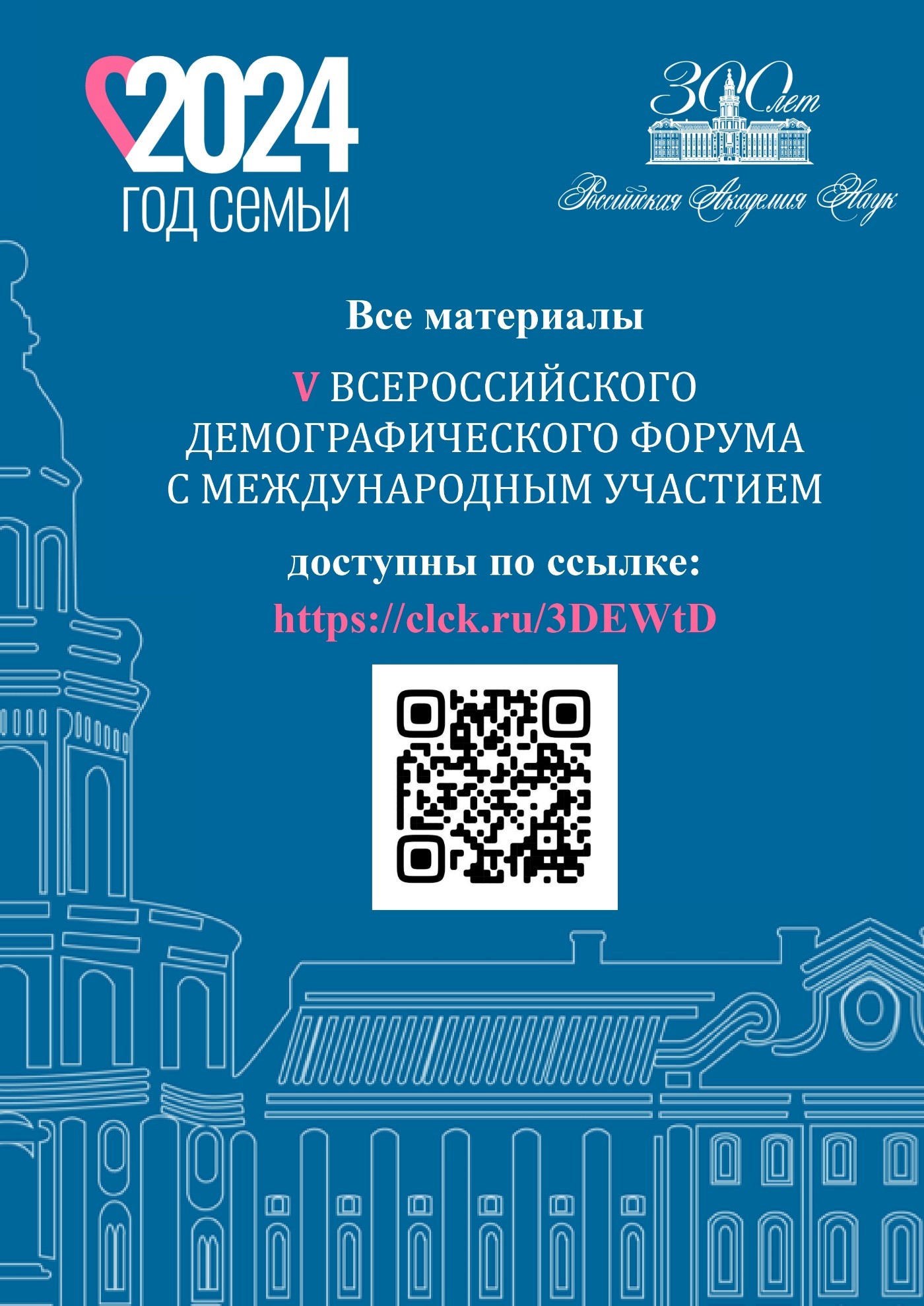 V Всероссийский демографический форум с международным участием, приуроченный к 300-летию Российской академии наук и Году семьи в России, организованный Институтом демографических исследований (ИДИ) ФНИСЦ РАН совместно с Российским университетом дружбы народов имени Патриса Лумумбы и Министерством труда и социального развития РФ, проходит в г. Сочи с 23 по 28 сентября 2024 года.