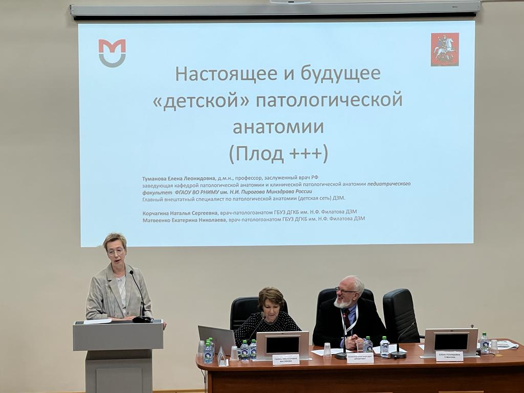 Главный внештатный специалист по патологической анатомии (детской сети) Департамента здравоохранения г. Москвы проф. Е. Л. Туманова выступила с докладом «Настоящее и будущее детской патологической анатомии (Плод+++)».