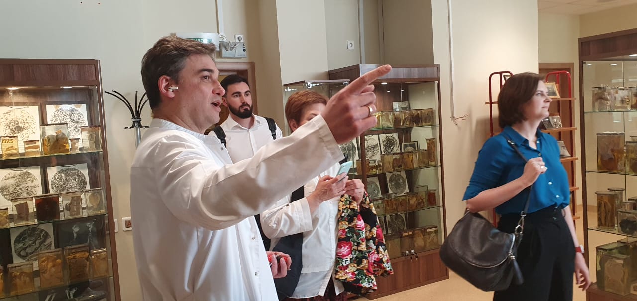 Перед началом заседания все желающие посетили патолого-анатомический музей, расположенный в патолого-анатомическом корпусе института. Каниболоцкий А. А. провел экскурсию и рассказал об истории создании музея и о перспективах его развития. Посетители экскурсии оставили свои пожелания в гостевой книге.