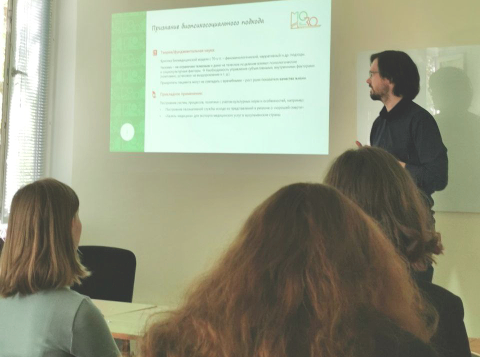 В рамках совместного мероприятия с Кафедрой медицинского права, этики и антропологии РНИМУ им. Пирогова руководитель Центра медико-социологических исследований, кандидат политических наук Игнат Богдан прочитал открытую лекцию для работников ЦИОМ РНИМУ (подразделения, занимающегося опросами в университете) на тему специфики применения прикладной социологии в здравоохранении.