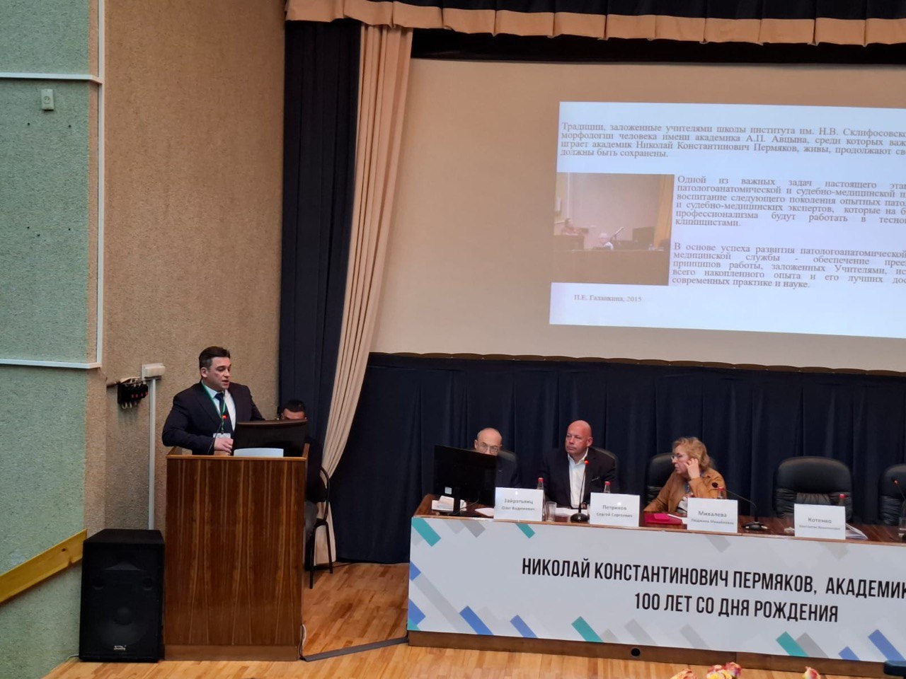 На мероприятии выступили соратники и ученики Николая Константиновича, ведущие специалисты в области патологической анатомии, молодые ученые. В рамках конференции выступил А. А. Каниболоцкий, заведующий патолого-анатомическим отделением НИИ им. Н. В. Склифосовского, заведующий организационно-методическим отделом по патологической анатомии ДЗМ. В своем выступлении Александр Алексеевич подчеркнул огромную роль работ Н. К. Пермякова для науки, а также значимость практической работы патологоанатома.