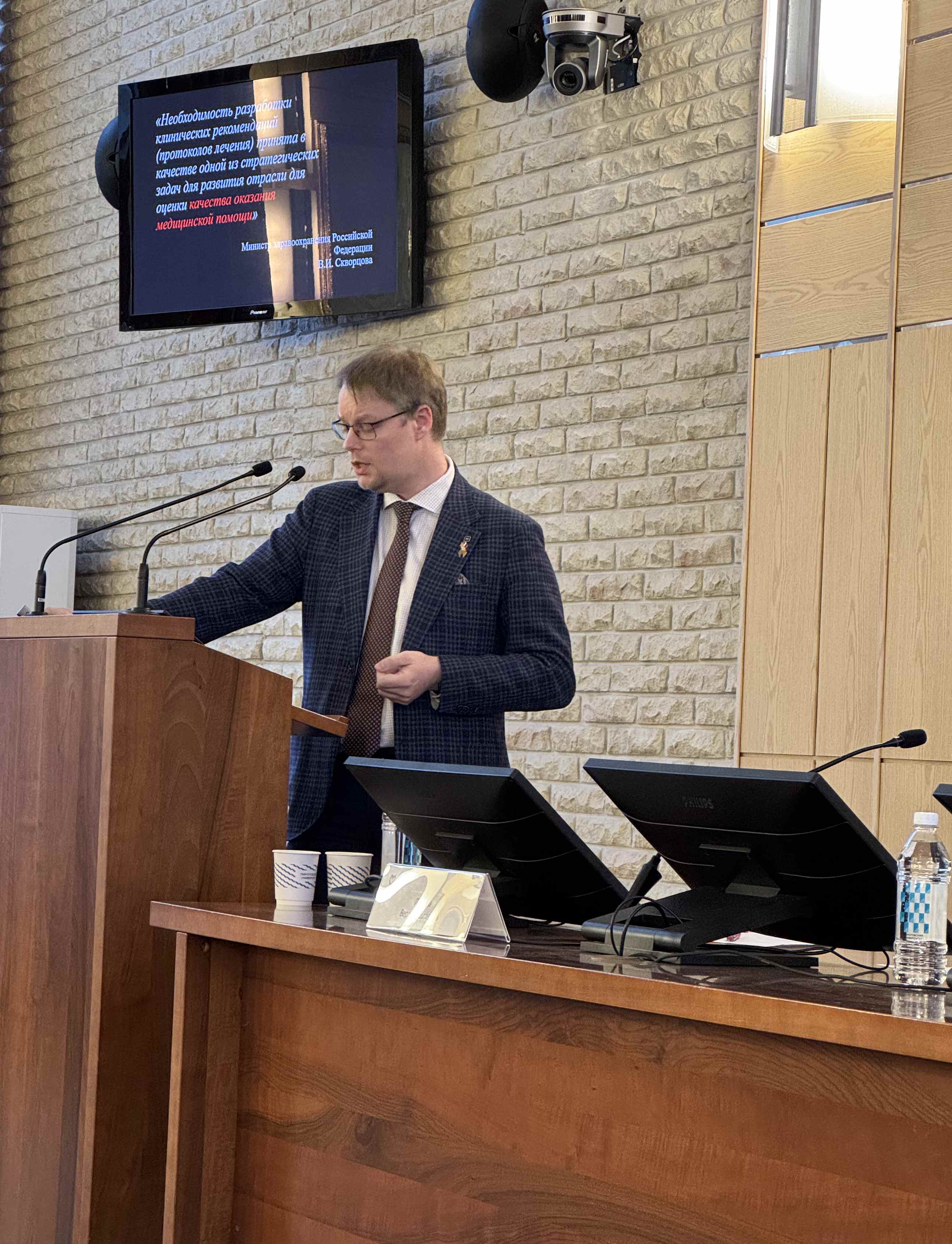 - Дмитрий Олегович Драгунов, к.м.н., доцент, заведующий организационно-методическим отделом по терапии Департамента здравоохранения Москвы, доцент кафедры пропедевтики внутренних болезней № 1, представил доклад «Качество медицинской помощи в России: нормативно-правовые основы и вызовы реализации на практике».