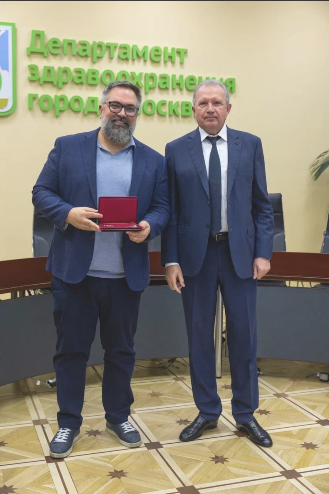В Москве в Департаменте здравоохранения города Москвы 8 октября в торжественной обстановке прошло вручение медали Луки Крымского Егору Сергеевичу Ларину, заместителю главного врача по анестезиологии и реаниматологии ГБУЗ «ГВВ № 3 ДЗМ», заведующему организационно-методическим отделом по анестезиологии и реаниматологии НИИОЗММ ДЗМ. Специалиста и его коллег из других медицинских организаций награждал руководитель Департамента здравоохранения города Москвы Алексей Хрипун.